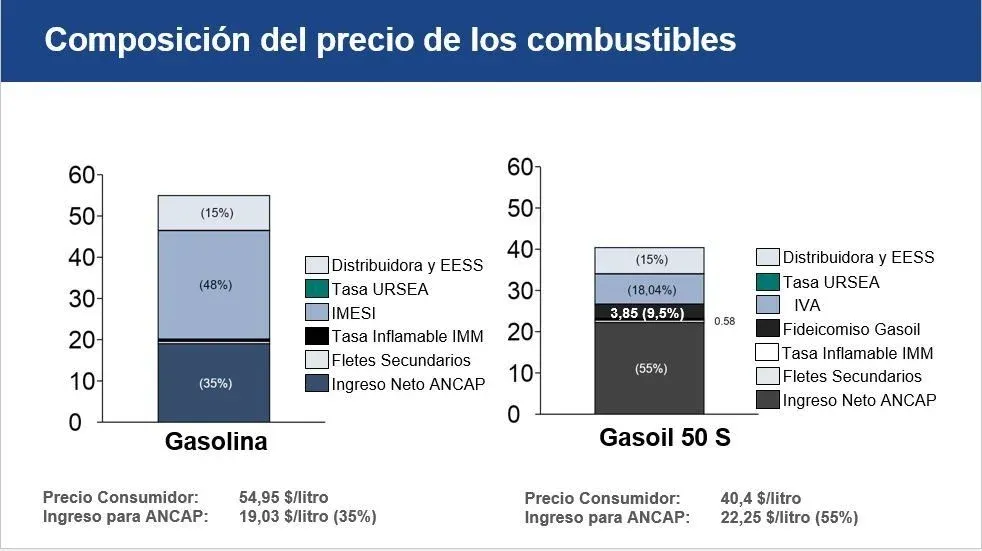 Se fija únicamente el precio PPI en planta de Ancap y no hay precios intermedios o máximos. Bajo el principio rector de “libertad vigilada”, el regulador podría eventualmente intervenir para fijar precios de venta máximos tanto a las estaciones como al público, si constatara abusos. Esto requeriría un cambio legislativo porque la ley de Urgente Consideración dice que debe existir un precio máximo.
