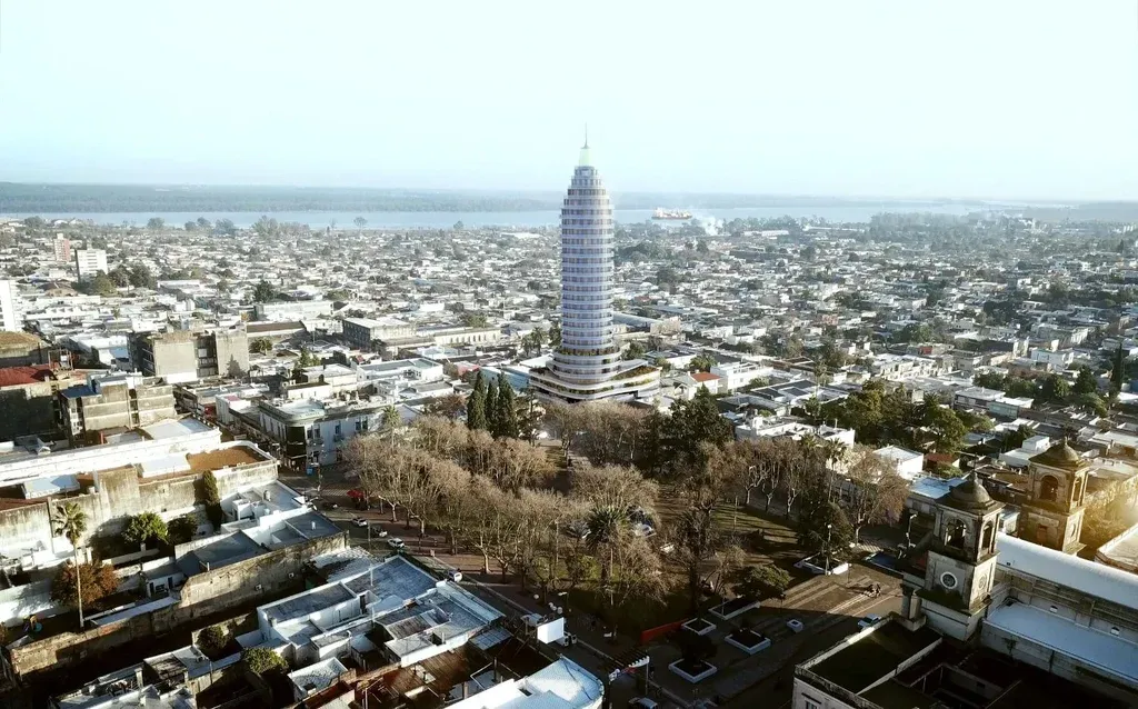 "En Montevideo hay más altos, en Punta del Este también, pero en el interior no. Va a tener 75 metros y unos 26 pisos", aseguró el arquitecto. El proyecto estará ubicado en una de las esquinas de la Plaza Constitución, en el centro de la ciudad.