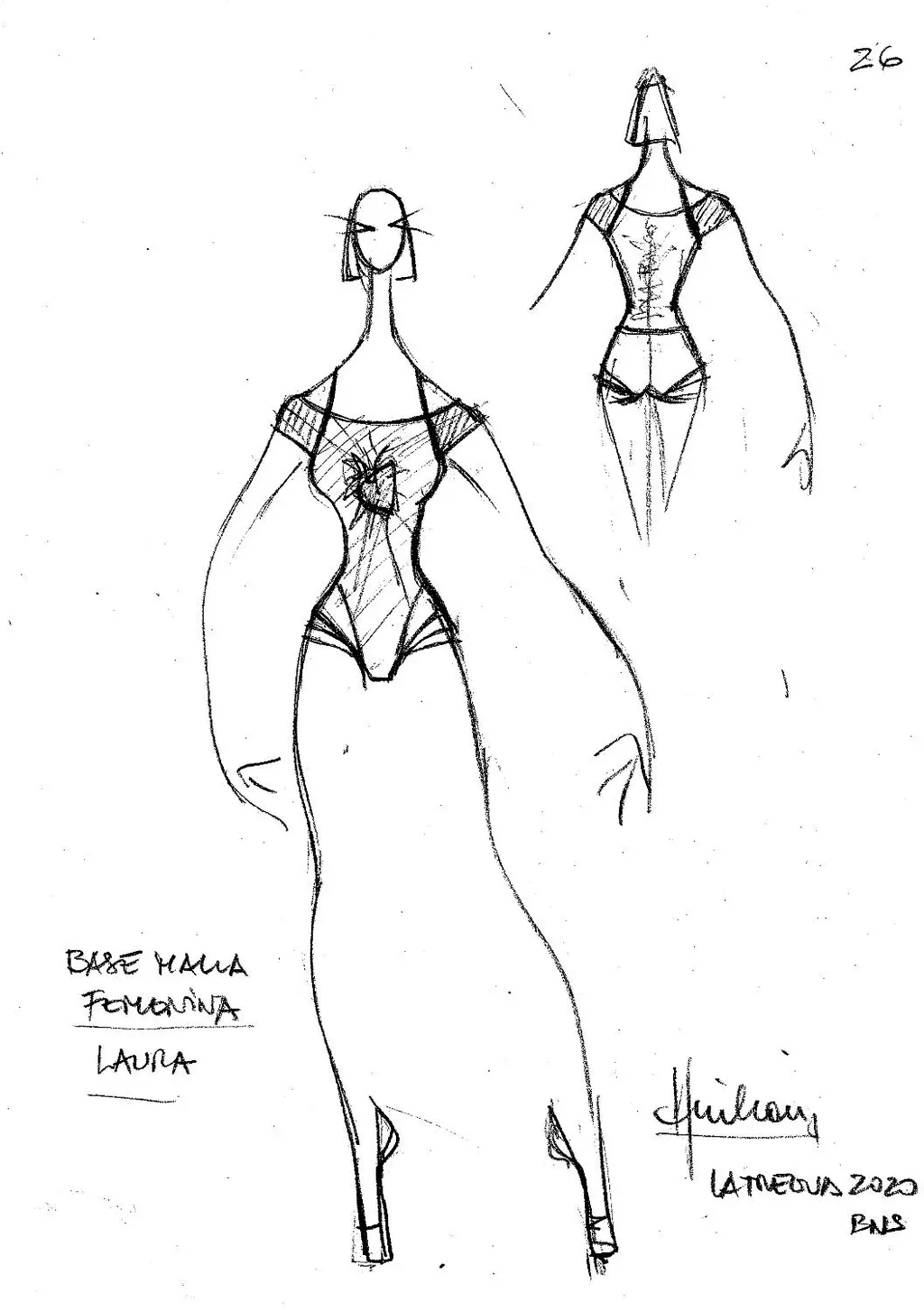 Hugo Millán- Gentileza BNS Boceto del vestuario de Laura “No se trata de una historia fantástica, sino una muy humana”, advierte el diseñador y cuenta que, por eso, las paletas de color que utilizó para crear el universo plástico de esta obra son clásicas y controladas, sin estridencias. De todas formas, la monotonía no se apropiará de lo visual. “La sorpresa será que no existe vestuario igual al otro, cada bailarín llevará una pieza única”, adelantó Millán. En el caso de Martín y Laura, sus vestuarios son “muy suaves” porque se trata de “dos seres muy para adentro”.