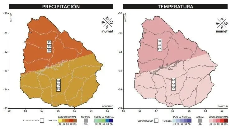 Este pronóstico se da en un contexto de sequía que está afectando la producción agropecuaria. La totalidad del área de uso agropecuario correspondiente a los departamentos Río Negro, Paysandú y Maldonado, más áreas parciales en otros siete departamentos (Rocha, Lavalleja, Canelones, Salto, Artigas, Tacuarembó y Durazno), fue declarada en estado de emergencia agropecuaria, con base en una decisión del Ministerio de Ganadería, Agricultura y Pesca (MGAP).