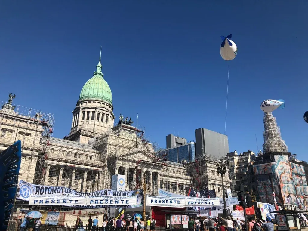 8.50 Buenos Aires amaneció este martes de manera atípica, con cortes al tráfico en la zona más céntrica, suspensión de parte del transporte público y congregación de personas desde primera hora frente a la Casa Rosada y al Congreso, donde hoy asumirá el nuevo presidente Alberto Fernández. El departamento de Tránsito de la ciudad publicó un mapa con las zonas cortadas al tráfico, que abarca desde la sede del poder Legislativo, donde se oficializará el traspaso de mando, a la casa de Gobierno, adonde se trasladará Fernández y está previsto que de un discurso a los seguidores que ya lo esperan en la emblemática Plaza de Mayo. Asimismo varias líneas de autobús, metro y tren suspendieron su servicio. A pesar del intenso calor que azota la ciudad, donde se esperan máximas superiores a los 30 grados, los seguidores de Fernández coparon con pancartas las calles y plazas, donde hay instaladas múltiples parrillas para abastecer con el tradicional asado a los asistentes. En la Avenida de Mayo, que recorre los más de 2 kilómetros que separa el Congreso de la Casa Rosada, hay instalados varios escenarios donde tocarán más de 15 bandas para amenizar la jornada. (EFE)