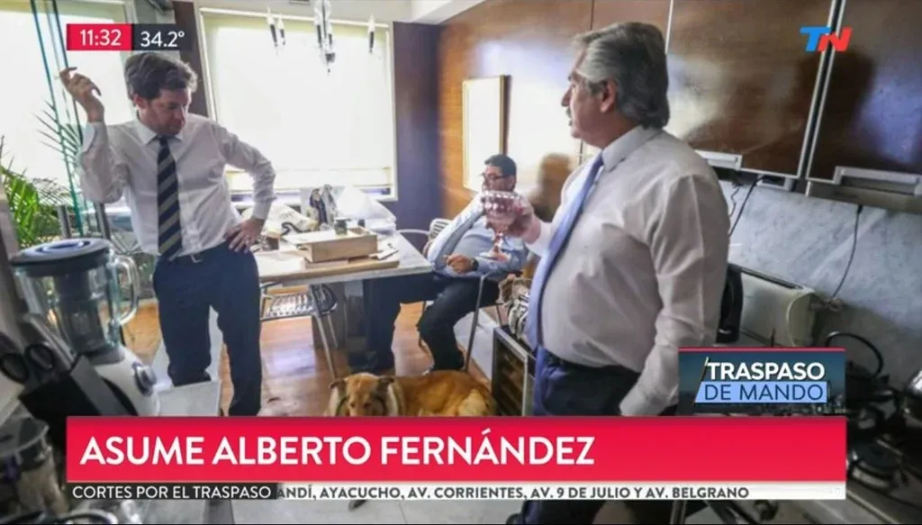 12.04 Fernández ya porta la banda y el bastón presidencial, los atributos del mando.
