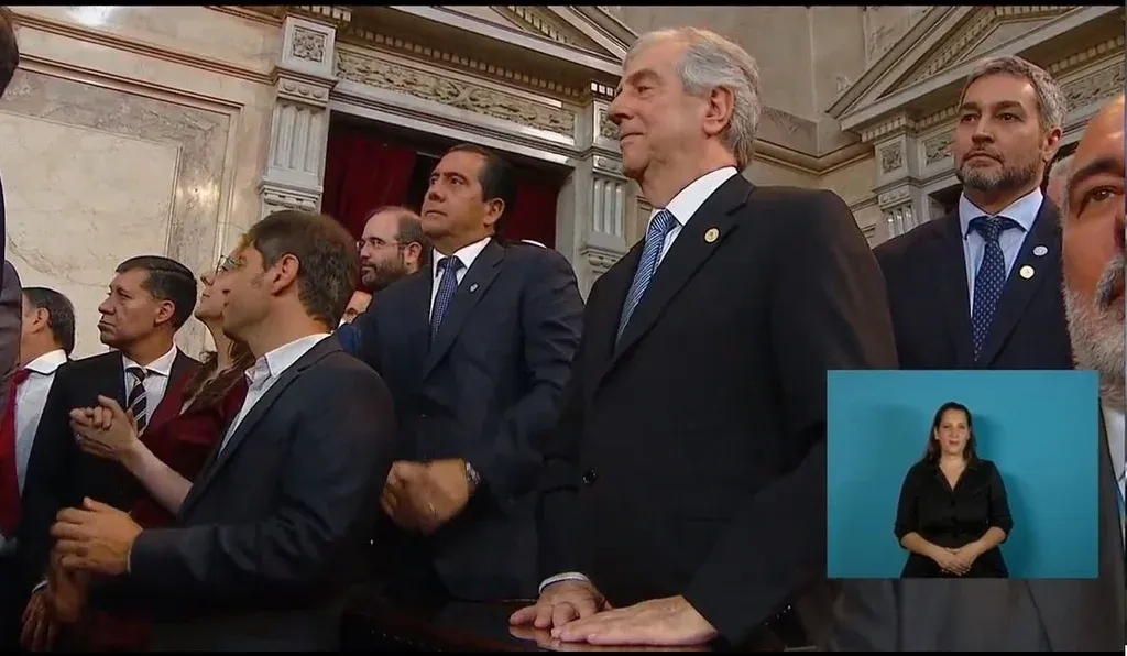 TV PÚBLICA 11.55 Michetti le da la bienvenida oficial a los gobernantes electos y en el Congreso comienzan los cánticos y aplausos.