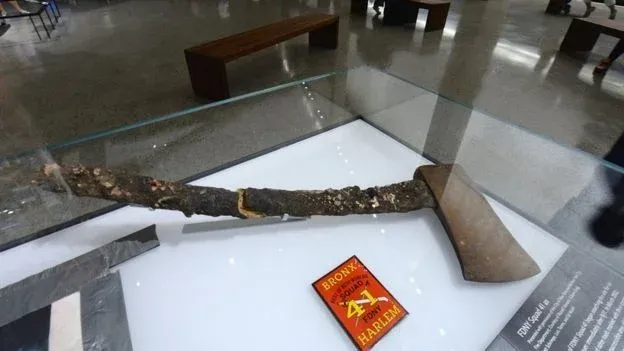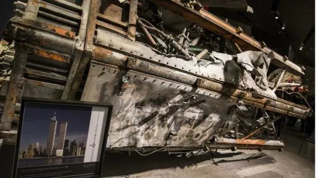 En este estado quedó un hacha de uno de los destacamentos de bomberos del barrio de Harlem que acudió al rescate de las personas atrapadas en las Torres Gemelas, antes de que estas se derrumbaran.