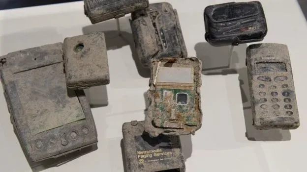 Estos teléfonos celulares y localizadores fueron hallados también entre los escombros de las Torres Gemelas.
