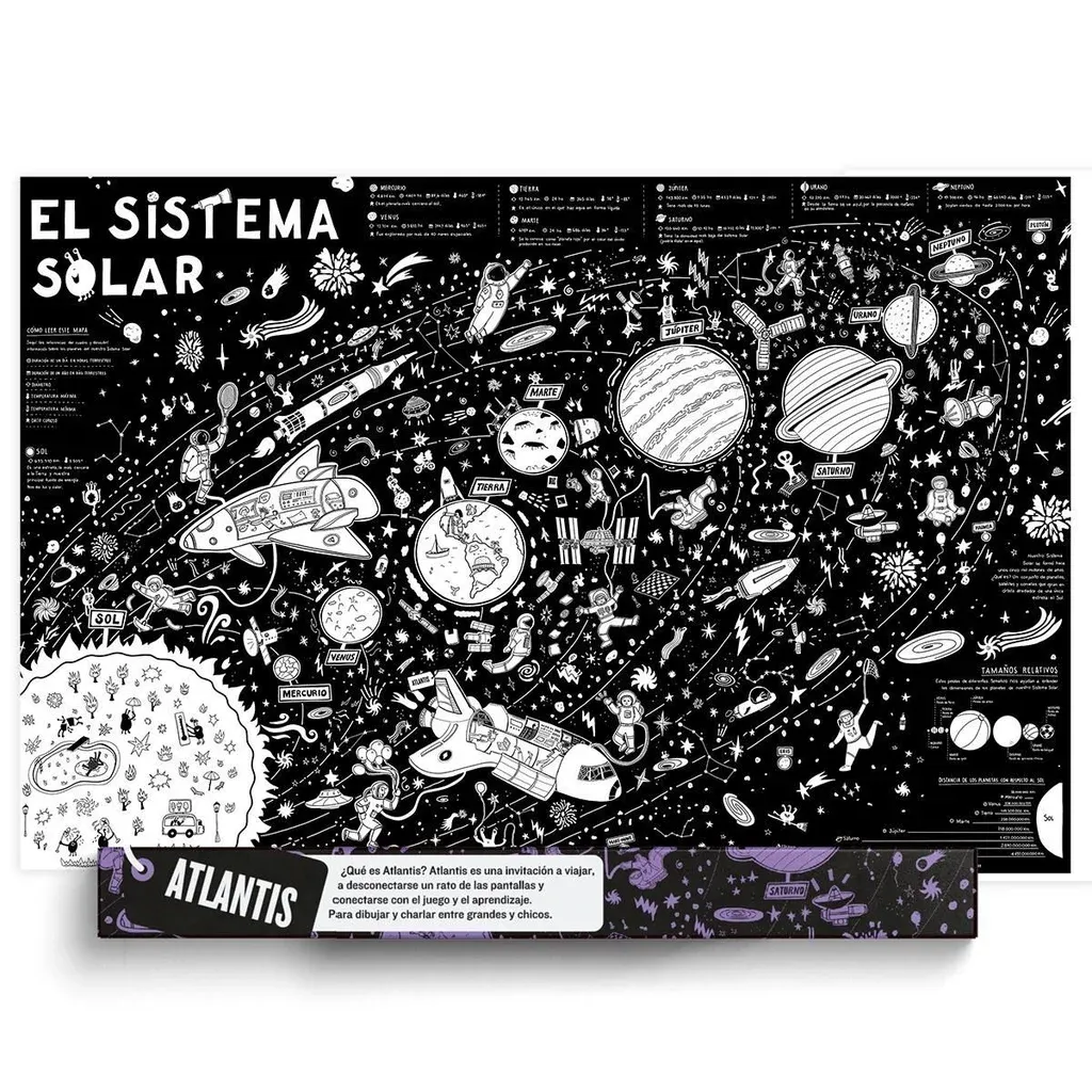 Atlantis mapas Dado que se trata de mapas de grandes proporciones –90 por 60 centímetros–, Minujín explicó que están pensados para ser coloreados durante un tiempo prolongado de tiempo. Por eso las láminas cuentan con un packaging resistente para poder guardarlos luego de cada sesión de pintado. Son también un elemento que merece un espacio en cualquier pared de la casa una vez terminado, porque son visualmente atractivos y porque exhibirían la impronta de cada familia o grupo de amigos que lo pinte.