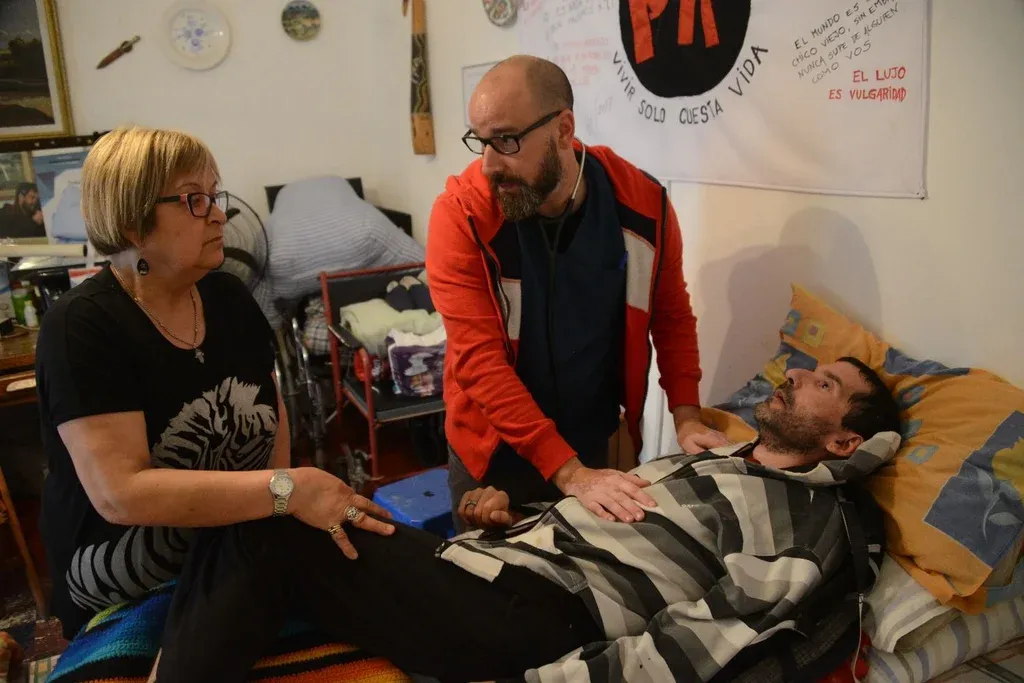 Es miércoles al mediodía y Doris abre la puerta de su casa de la calle Magallanes para recibir a Álvaro Mendéz, uno de los médicos que integra la unidad de cuidados paliativos del Hospital Maciel, centro de referencia de esta especialidad. “¡Alvarito!”, dice ella con una sonrisa conmovedora. Se abrazan y los brazos de uno aprietan tan fuerte la espalda del otro que se hunden los dedos en la ropa. Y se detienen allí unos segundos. “Pasá, entrá nomás. Damián ayer tuvo una noche complicada, pensé que no llegaba a hoy con vida”, le comentó al médico mientras se dirigían al cuarto de su hijo.