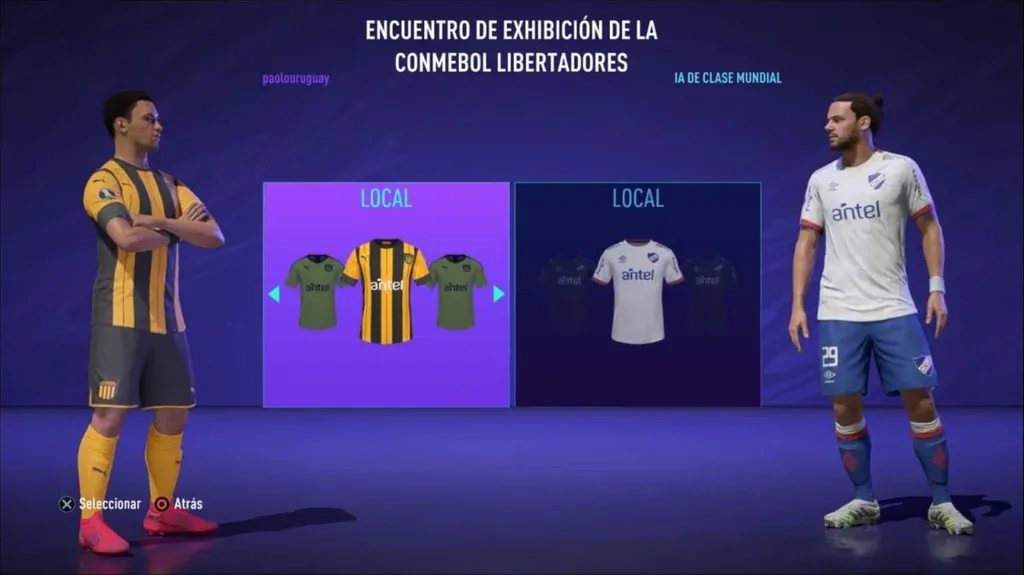 Por ahora, Uruguay aparece de forma genérica. Serendero, Frendado, Riquero y Dálves deberían ser Muslera, Godín, Bentancur y Suárez. Y la indumentaria no es la oficial: la marca deportiva no aparece en los jugadores y tampoco el escudo de la AUF. Habrá que esperar las próximas semanas para ver si finalmente se concreta esta negociación.
