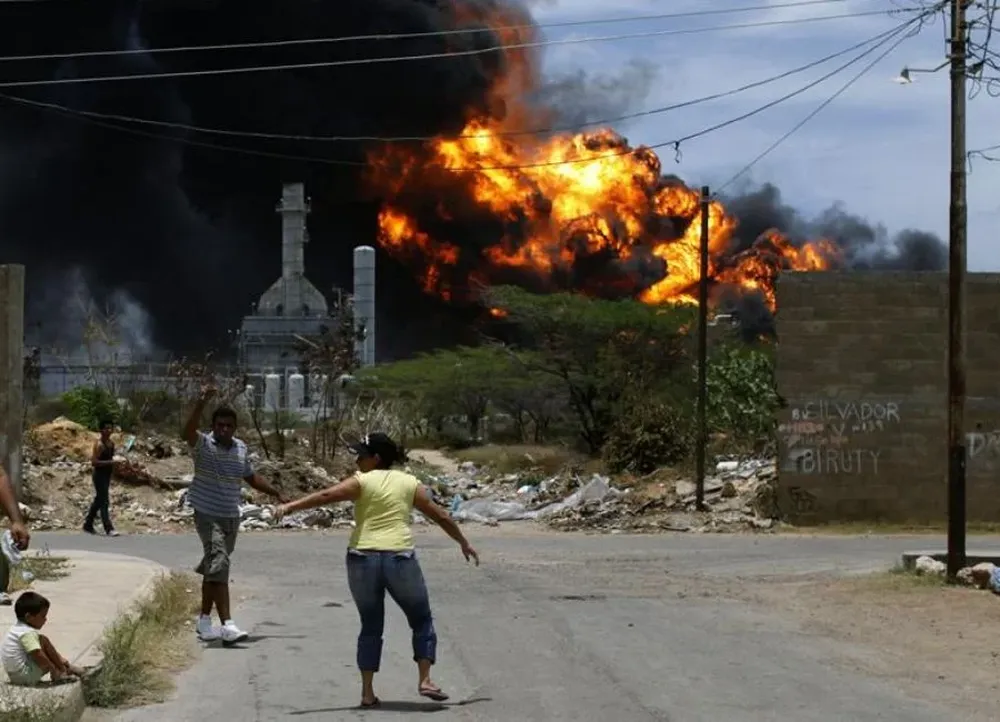 Las llamas de la refinería de Amuay seguían cubriendo este lunes el cielo de Punto Fijo, en el noroeste de Venezuela, mientras las autoridades elevaban a 48 el número de muertos que dejó la explosión el sábado en el Centro de Refinamiento de Paraguaná (CRP), uno de los mayores del mundo.