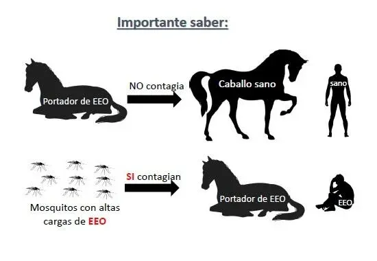 Un equino infectado tiene un riesgo insignificante de contagio hacia otros equinos y al ser humano.