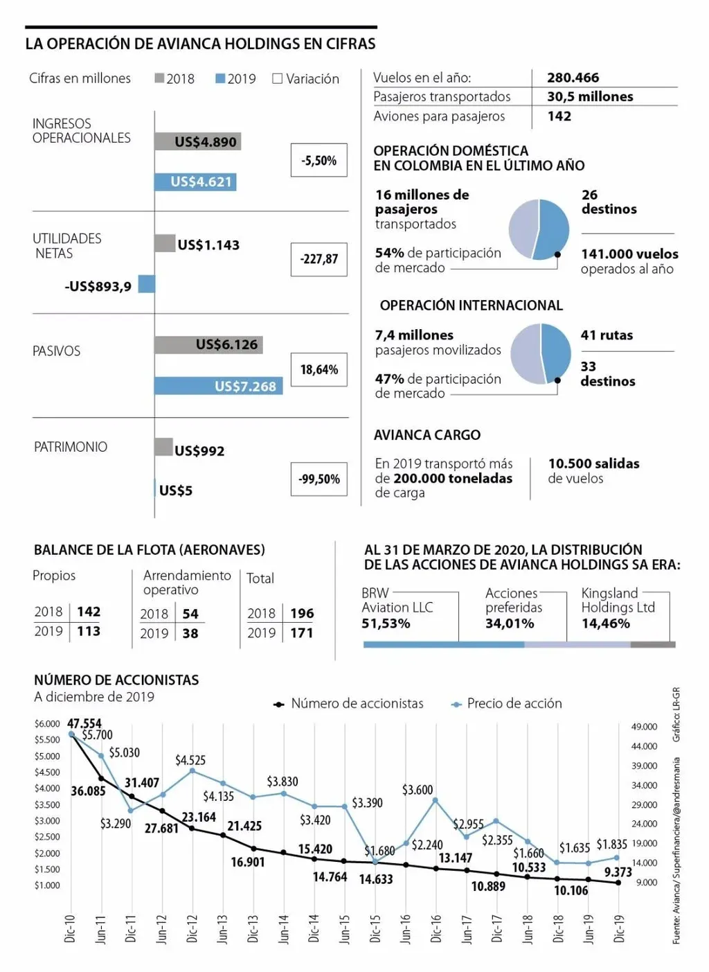 Principal aerolínea de Colombia, la compañía registró el año pasado una pérdida neta de US$ 894 millones contra 1,1 millones de ganancia en 2018.