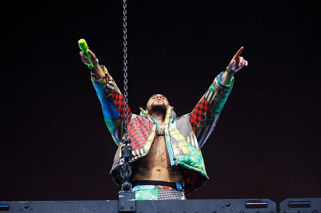 Cuando Post Malone, cuya actuación fue empañada por problemas técnicos, se le unió en el escenario, sonrió extrañado mientras Bad Bunny le hablaba en español.