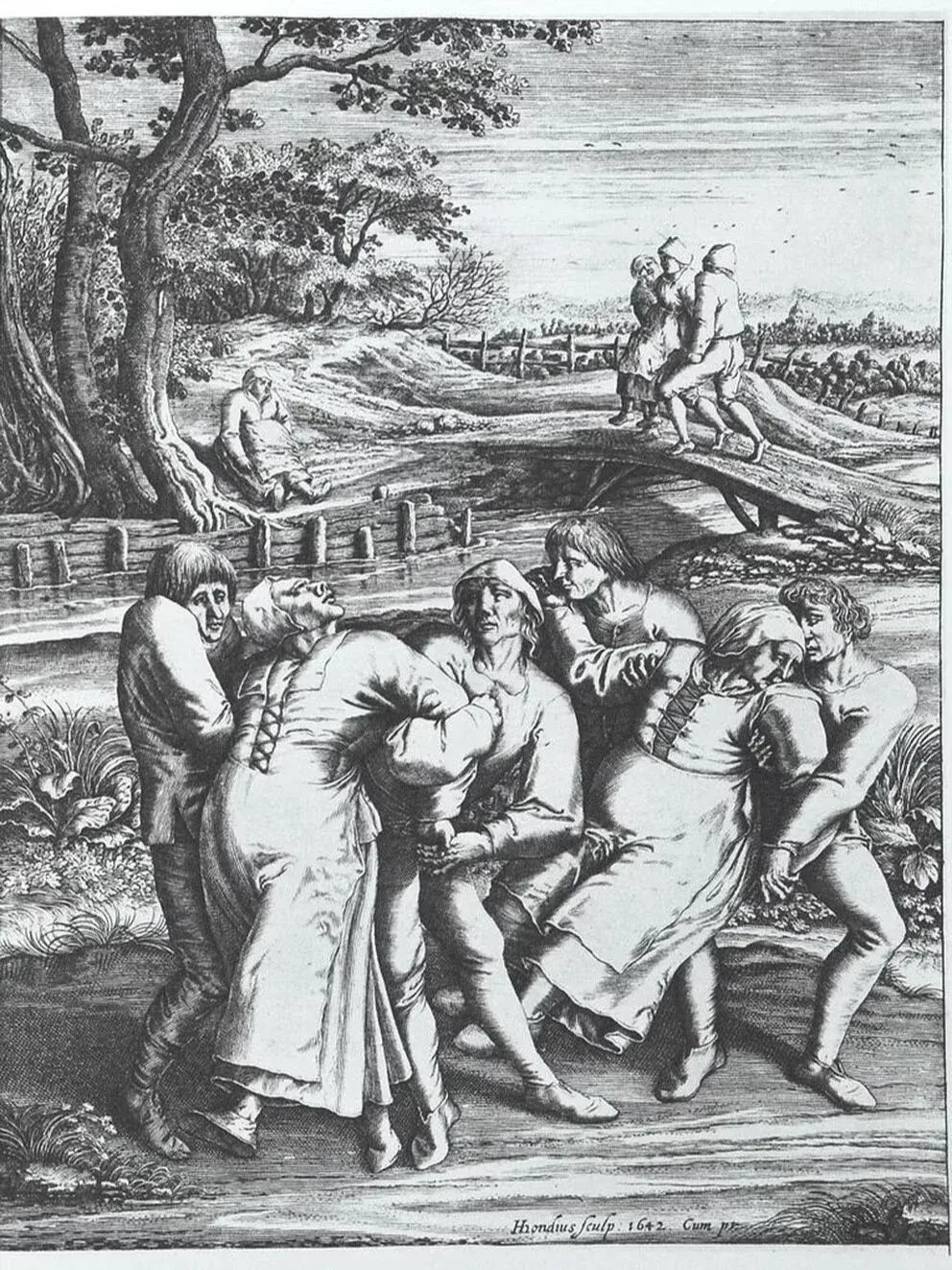 "Coreomanía en una peregrinación a la Iglesia de Sint-Jans-Molenbeek", grabado de Hendrick Hondius (1642) a partir del dibujo de Pieter Brueghel 'el Viejo' Pero el saldo fue irreparable: epilepsia, derrames, caídas e infartos. Después de bailar sin parar durante días y noches, algunos cayeron y no se volvieron a levantar.