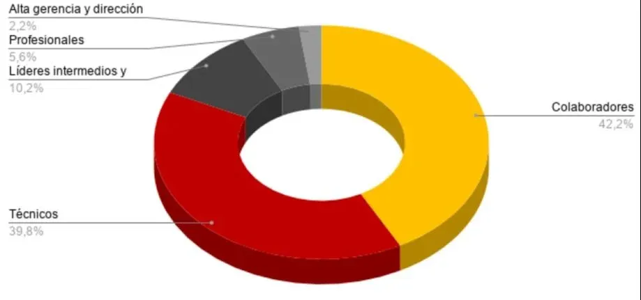 Con el 40% del total de cargos, la categoría siguiente es técnicos. Estos cargos son para trabajadores que tienen una educación específica y superior a la media, pero no necesariamente universitaria. Registraron un aumento interanual de 375% y una caída mensual de 1%.