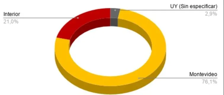 En términos de distribución geográfica, en el mes de abril de los llamados con datos, el 76% corresponde a llamados en Montevideo, el 21% para el interior del país y un 3% a Uruguay, sin especificar departamento.