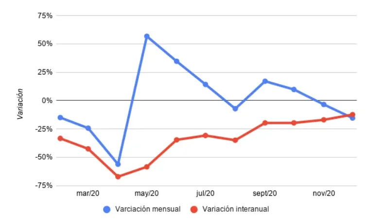 Según el informe, si no se tiene en cuenta el impacto propio de diciembre, no habría una caída del 15% de la demanda, sino un aumento del 8%. "Esto podría interpretarse como una señal positiva en el mercado laboral, en un mes marcado por el aumento exponencial de los casos de positivos de coronavirus".