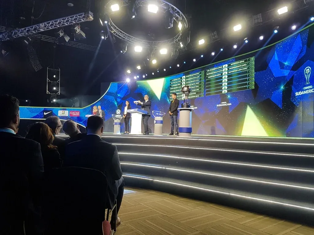 Luis Inzaurralde A las 20.30, estaba todo pronto. Había dos pares de conductores, dos pantallas para mostrar los sorteos. Dos cadenas, pero la misma presentación para cada torneo. Cada una tenía 30 minutos. DirecTV de 20.30 a 21 con el sorteo de la Sudamericana, y Fox Sports de 21 a 21.30 con el de la Libertadores.