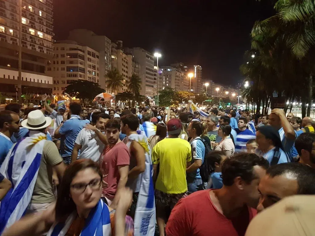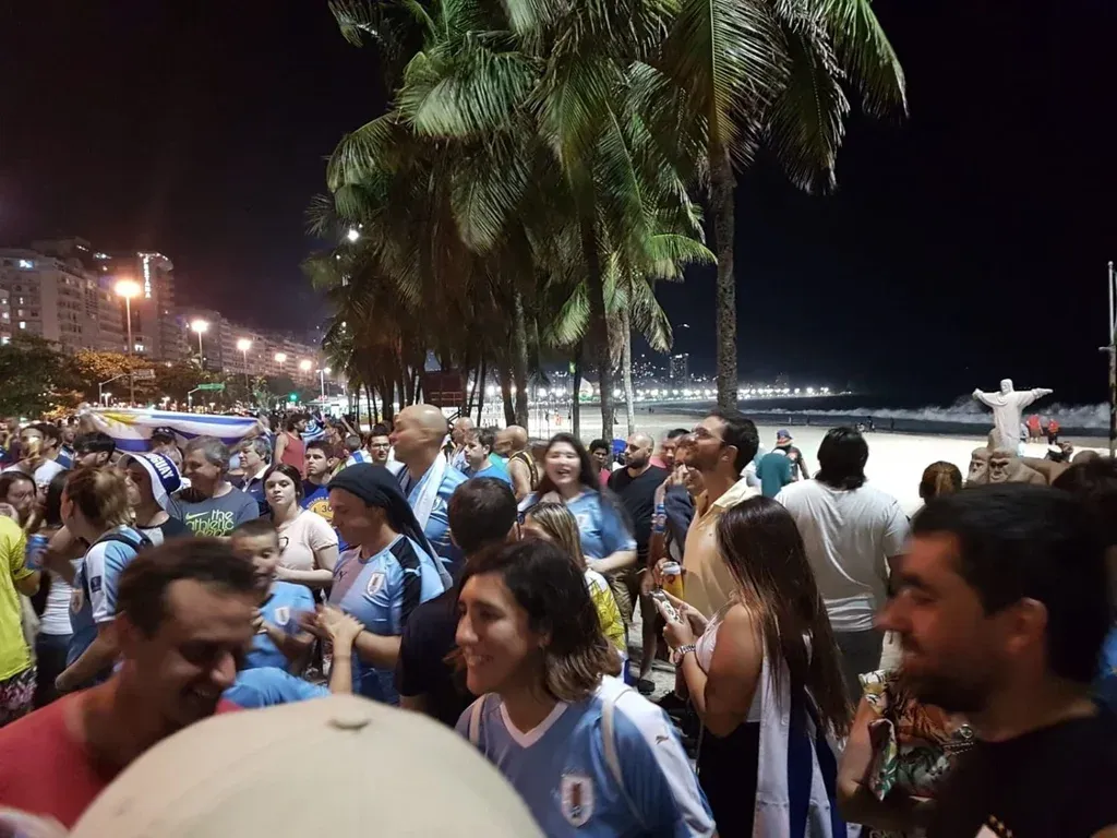 Sobre las 21 horas comenzó el encuentro de los uruguayos, quienes se ubicaron en la zona del Posto 5 de Copacabana.