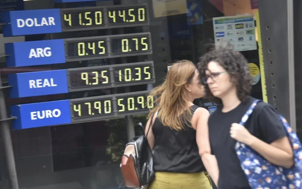 En la pizarra del Banco República el dólar cotizaba en la pizarra al público a $ 41,75 para la compra y $ 43,45 para la venta, tras tocar los $ 45 a media mañana. Por su parte, en los cambios privados la divisa se ofrecía en la franja de $ 44-44,50 para la venta a última hora de este lunes.