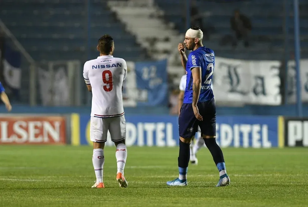 La polémica del primer tiempo del partido entre Nacional y Cerro Largo fue el codazo que le aplicó el argentino Gonzalo Bergessio a Yefferson Quintana.