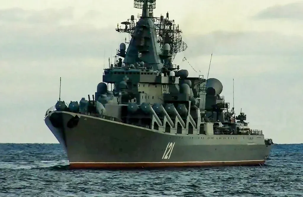 Crucero ruso Moskva durante los ejercicios navales del Mar Negro en las afueras del puerto de Crimea de Sebastopol.