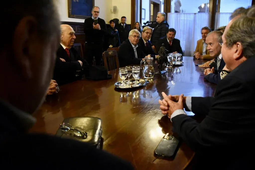 Sanguinetti fue recibido por el presidente del Partido Nacional, Pablo Iturralde, en una reunión en la que también asistieron dirigentes colorados y blancos.