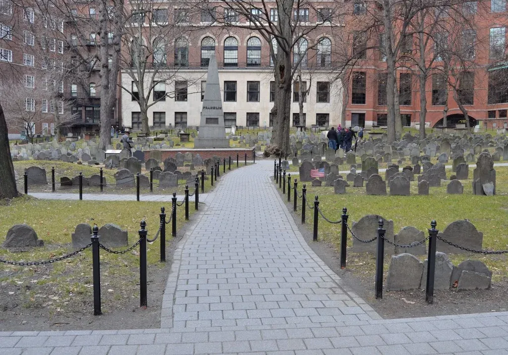 Cementerio Granary. Es el tercer cementerio de Boston, muy destacado porque allí descansan los restos de líderes revolucionarios y firmantes de la Declaración de la Independencia de 1776.