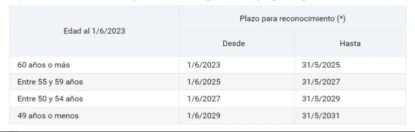 Las personas que hayan tenido actividad laboral amparada por el Banco de Previsión Social (BPS) antes del 1.° de abril de 1996 y que aún no hayan solicitado el reconocimiento de tales servicios, deberán hacerlo aportando todos los datos que se requieran. Esto de acuerdo con la edad que tuvieren al 1º de junio de 2023 y según el siguiente cuadro: