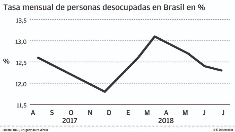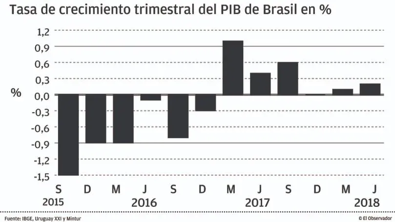 Luego de atravesar su peor recesión económica desde la crisis mundial de 1929, el PIB de Brasil ha mostrado una tibia recuperación en lo que va de este año con una expansión de 0,1% en el trimestre enero-marzo y otro modesto 0,2% en el período abril-junio. Empero, la tasa de desempleo se mantiene arriba del 12% tras una reforma laboral que parece no dar los resultados esperados. “Todavía hay más de 13 millones de brasileños en las calles”, dijo el analista Marcos Soto de Cibils-Soto Consultores.