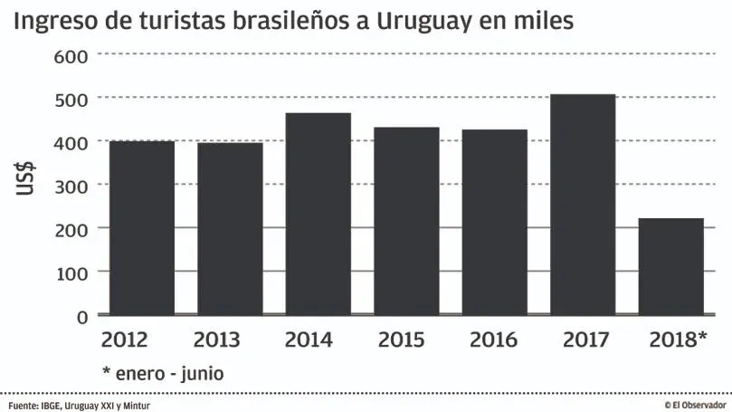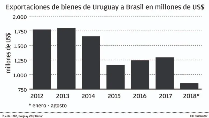 El experto explicó que pese a la crisis y cierta pérdida de dinamismo en las exportaciones a ese destino este año, Brasil continúa siendo el segundo mercado en importancia y el principal para productos industrializados uruguayos. Añadió que como prueba de la leve recuperación de la economía brasileña, la industria automotriz local ya logró triplicar sus ventas a ese cliente en 2018. “Hay un mercado que se está consolidando con un piso y con tendencia creciente y eso es una buena noticia”, dijo Soto, por otro lado, en referencia al ingreso de más de medio millón de turistas brasileños durante el primer semestre.