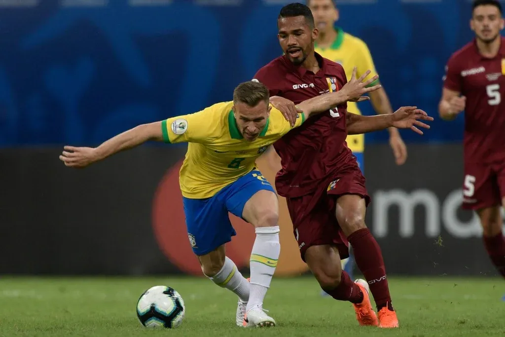 El ex Gremio completó 51 pases en la primera mitad. Pasó en corto y largo y movió el compacto bloque brasileño que en los primeros 20' fue un azote sobre el arco de Wuilker Fariñez.