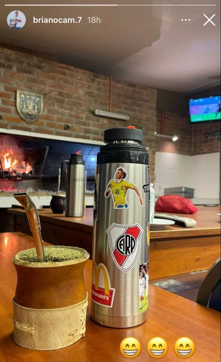 En las últimas horas Ocampo publicó en Instagram la fotografía de un termo donde, además de una fotografía del brasileño Neymar, sobresale el escudo de River Plate de Argentina.