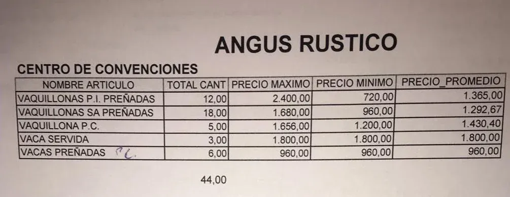 Finalmente se vendieron seis vacas preñadas PC a un valor de US$ 960 cada una.