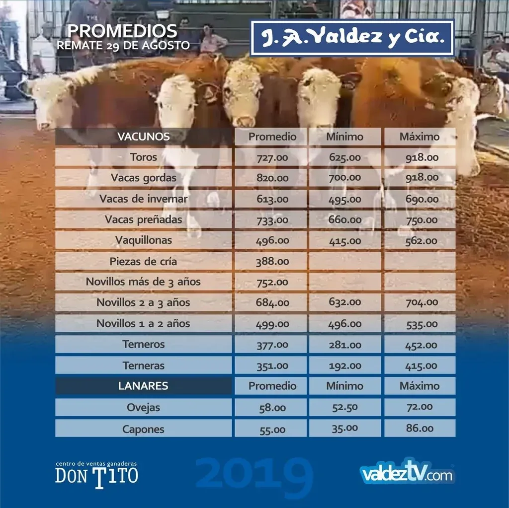 En la feria mensual realizada en el Centro de Ventas Ganaderas Don Tito, Valdez y Cía dispersó 716 vacunos a muy buen ritmo y valores con pujas provenientes de todo el país.