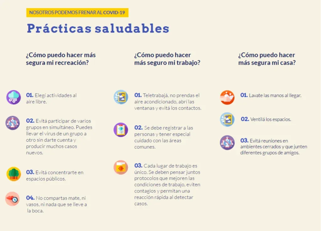 El documento de los expertos también incluye consejos para la vida laboral. Recomiendan que, si es posible, se teletrabaje. "Teletrabajá, no prendas el aire acondicionado, abrí las ventanas y evitá los contactos", indica el texto.