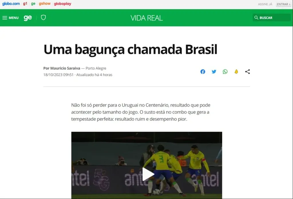 El medio de Río de Janeiro Extra también expresó que el "Dinizmo" se llevó un "ole", y calificó como "pésima" la actuación del seleccionado brasileño.