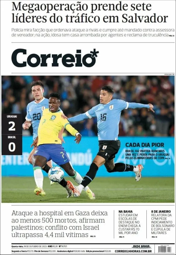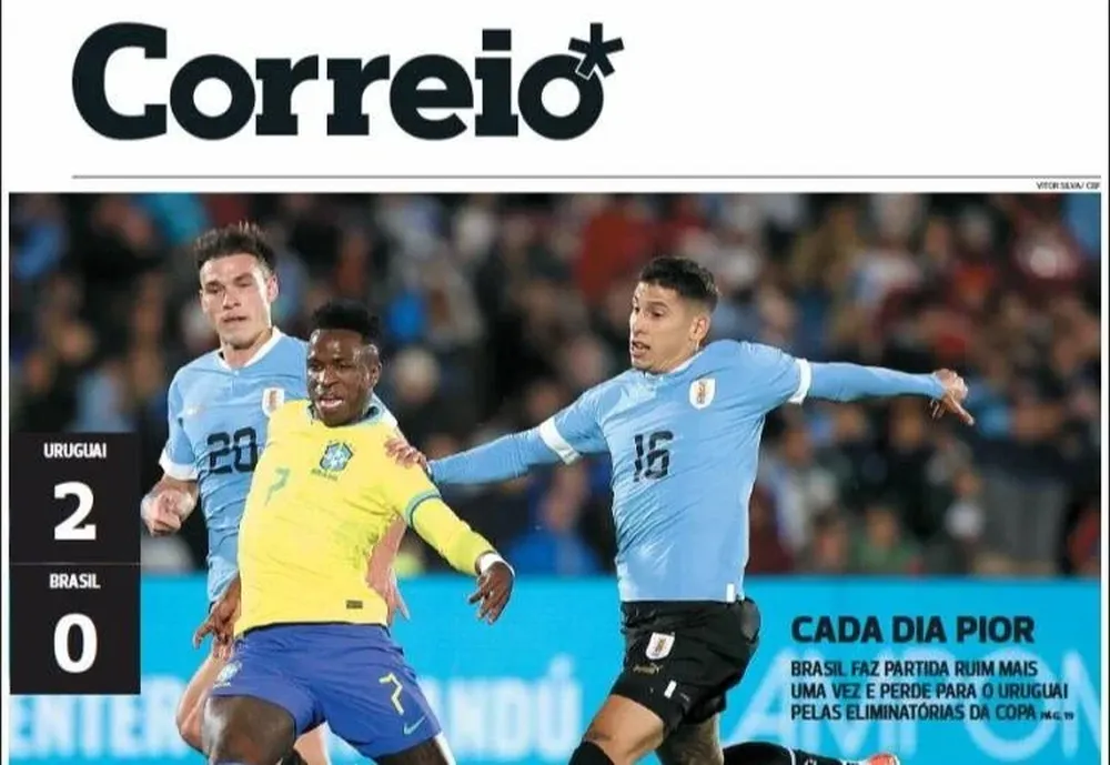 "Cada día peor", fue el título del medio bahiano Correio. "Brasil hizo una vez más un partido malo y perdió con Uruguay", continuó, uniendo la derrota con Uruguay con el empate ante Venezuela por 1-1.