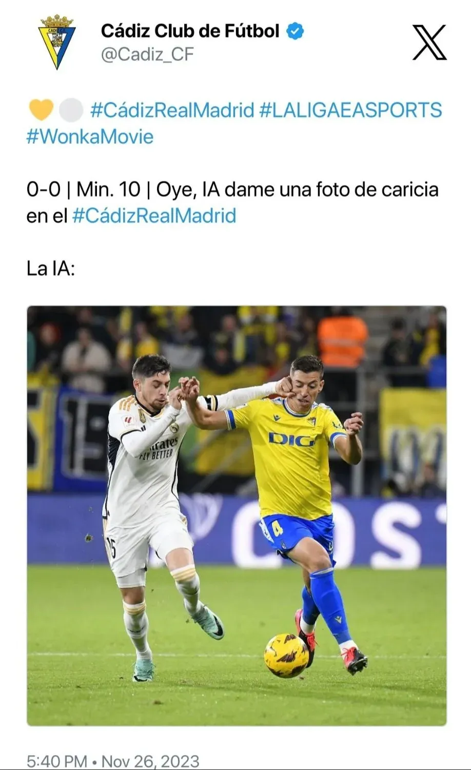 La "caricia" de Fede Valverde: Cádiz acusó al uruguayo con un posteo en sus redes; mirá la foto