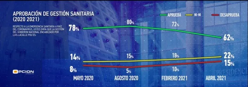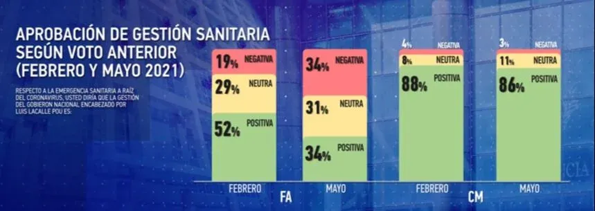 El informe de Opción, que muestra a la vez un aumento de la desaprobación y las opiniones neutrales, destaca que el descenso se concentró principalmente entre votantes frenteamplistas que ya no aprobaban el gobierno de Lacalle Pou pero sí la gestión sanitaria.