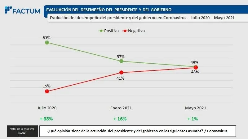 Otra consultora que en estos días informó acerca del deterioro en la evaluación del manejo de la pandemia, aunque con matices en la dimensión del cambio, fue la empresa Factum.