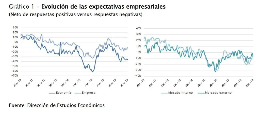 Las expectativas empresariales siguen en terreno negativo en todas las dimensiones: economía, empresa, mercado interno y externo, según la Encuesta Industrial elaborada por la Cámara de Industrias del Uruguay (CIU) que fue divulgada este martes.