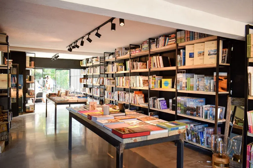 Sin carteles que indiquen las secciones de libros, la magia de la librería invita a perderse entre los libros. Hay un importante volumen de títulos de narrativa, poesía, historia, clásicos y las últimas novedades. Hay libros de gastronomía, arte, fotografía, diseño, libros objeto. No falta la sección infantil para los más pequeños.