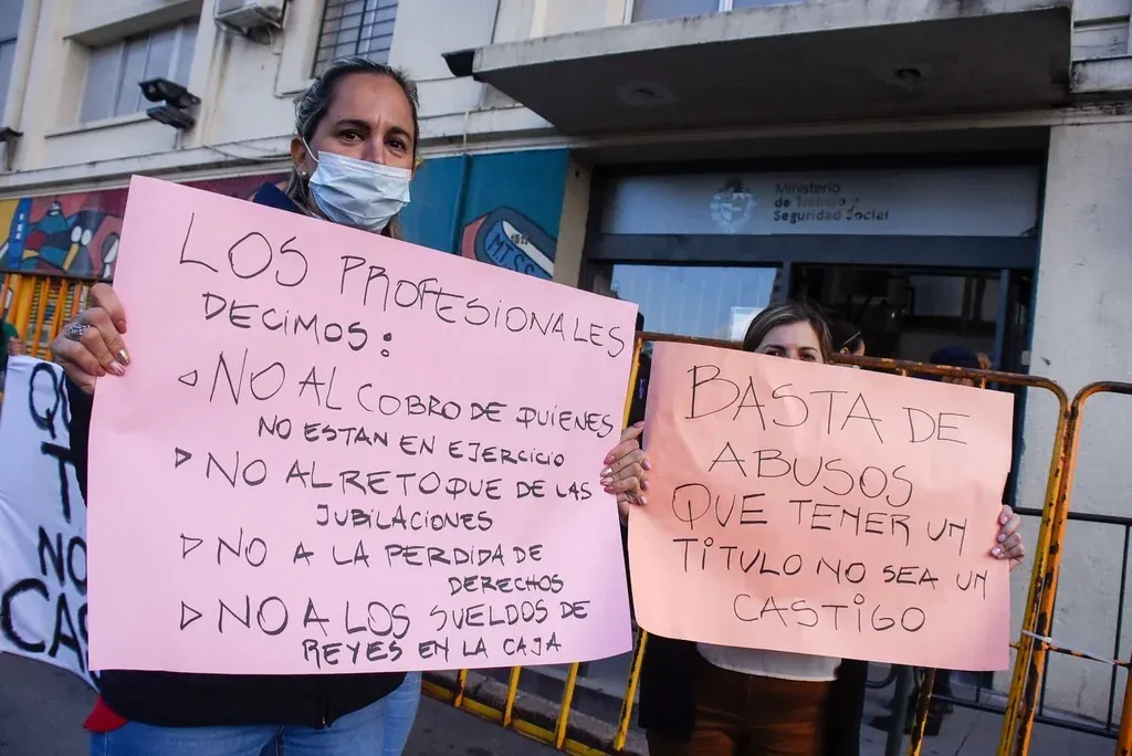 La concentración frente al MTSS fue convocada por Facebook. "Marcha por los profesionales y sus derechos. Grupo apolítico" es el nombre con el que la iniciativa tomó forma. Tiene unos 6.900 miembros, y fue creado hace un mes. En la descripción se explica: "Nos agrupamos para marchar y reclamar ante la Caja Profesional por las medidas a implementar a causa de la pésima gestión y su inoperancia. Reclamamos rebaja de sueldos ya de los cargos gerenciales".