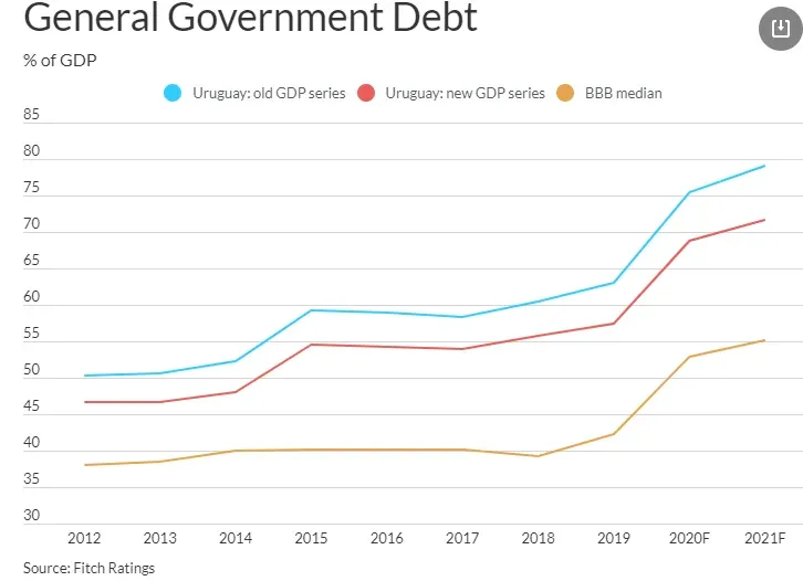 La calificadora de riesgo Fitch Ratings divulgó este viernes un comentario titulado Cambio en PIB de Uruguay modifica métricas pero no es decisivo para la perspectiva, luego que el Banco Central del Uruguay (BCU) publicara las nuevas cifras de Cuentas Nacionales tomando como año base el 2016, que mejoró los ratios de deuda y déficit de Uruguay. La evaluación de Fitch es relevante porque es la calificadora que tiene a Uruguay con el mínimo dentro del grado inversor y con perspectiva negativa. En teoría sería con la primera agencia con la que el país pueda perder ese activo que hoy le permite financiarse a tasas más bajas en los mercados de deuda local e internacional.