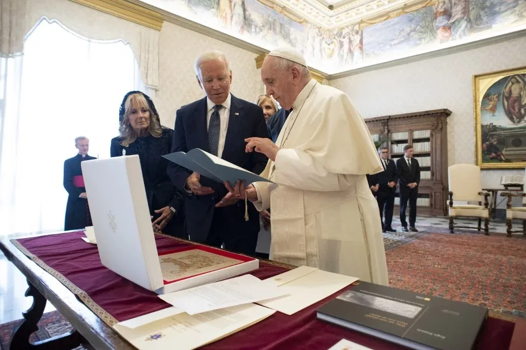 Al término del encuentro intercambiaron regalos como está previsto por el protocolo. Biden le regaló una elegante casulla realizada en 1930, mientras el papa una pintura sobre una baldosa de cerámica y una edición especial de sus escritos y documentos.