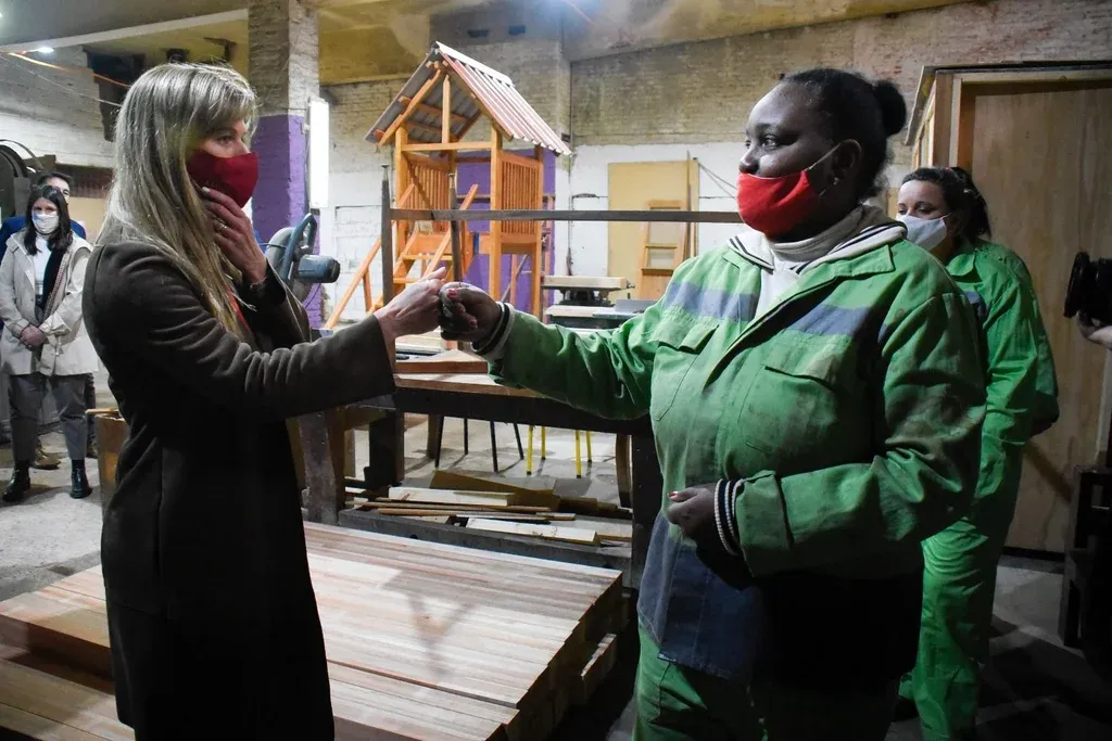 “Cuando sabe que con la remuneración de su sueldo puede mantener a sus hijos, nos hace sentir muy grandes”, dijo la primera dama. Como Natalia, otras reclusas construyeron el local, ya que en el Polo Industrial aprenden oficios vinculados a la herrería, electricidad, sanitaria, hacen bloques y otras tareas.