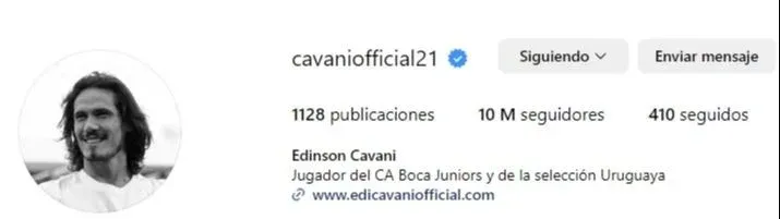 Edinson Cavani, el nuevo delantero de Boca Juniors argentino, actualizó en las últimas horas su perfil de Instagram tras firmar con su flamante club, pero mantuvo un guiño a la selección uruguaya.