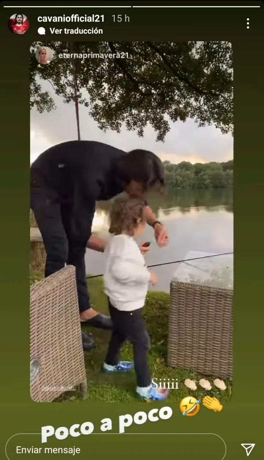 Mientras espera su regreso a las canchas, el Matador, que esta semana tuvo una nueva canción de los hinchas del United, le dio clases de pesca a su pequeña hija India, quien, como mostró en sus redes, parece que ya aprendió.