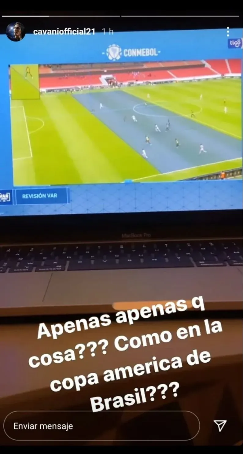 El delantero, que no fue convocado para estos dos primeros partidos de Eliminatorias, además escribió: “Apenas, apenas, ¿qué cosa? ¿Como en la copa América de Brasil?”.