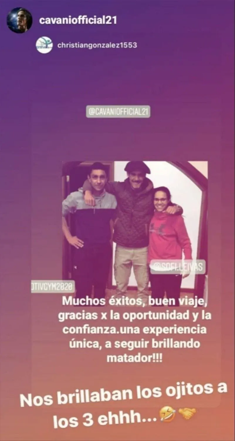 El preparador físico de Edinson Cavani en Salto, Christian González, subió un saludo para El Matador en su cuenta de Instagram